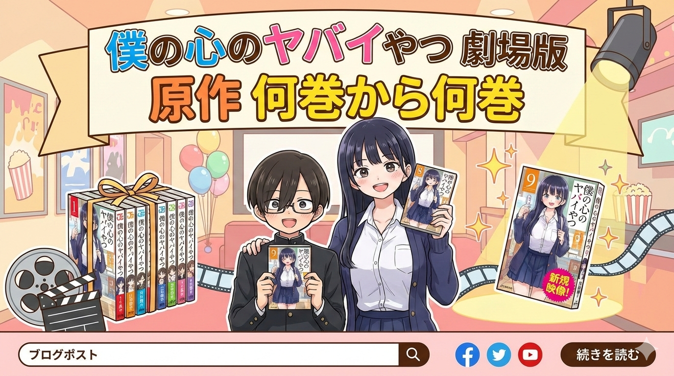 劇場版「僕の心のヤバイやつ」は、TVアニメ1期・2期(原作1〜8巻)の総集編に加え、原作9巻の一部エピソードを新規映像として追加した構成です。映画を観た後に原作の続きを読むなら9巻からがおすすめで、Amebaマンガなら初回100冊50%還元で全巻お得に購入できます。