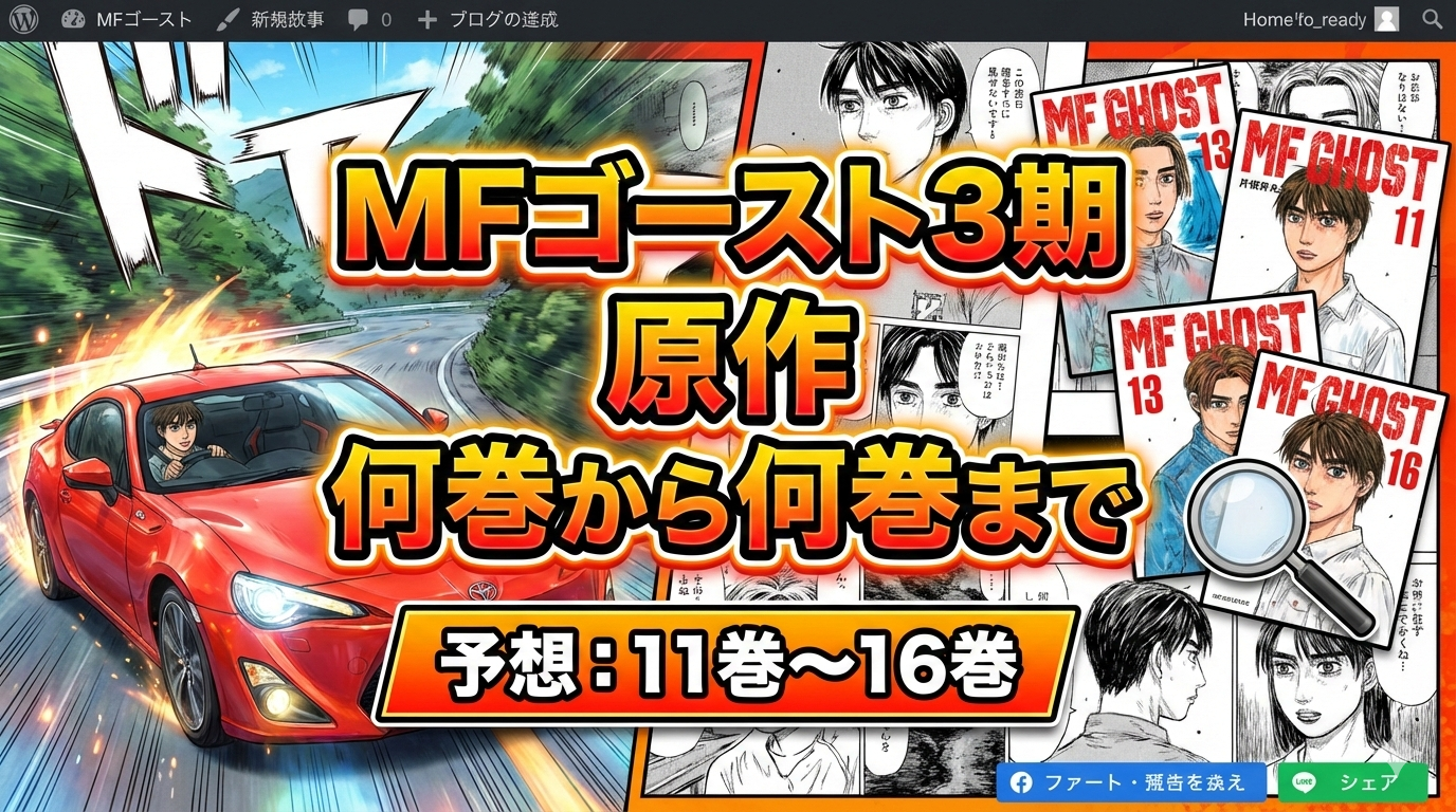 MFゴースト アニメ3期(3rd Season)は、原作漫画の11巻(123話)〜16巻(190話)に該当すると予想されています。2026年2月時点で放送中の3期は原作13巻あたりまで進行しており、続きを読むなら原作13巻以降を手に取るのがベストです。ここでは、アニメと原作の対応関係・お得な読み方を徹底解説します。