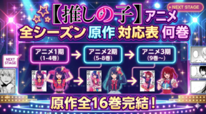 MFゴーストのようにアニメ放送中の作品で「原作の何巻から何巻まで?」が気になる方には、以下の記事もおすすめです。