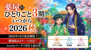 2026年夏〜秋にかけて放送が予定されているアニメ作品の原作情報として、『アオのハコ』2期は原作何巻から何巻まで?アニメの続きは10巻から【2026年秋放送決定】やSAKAMOTO DAYSアニメの続きは漫画何巻から?原作対応表と電子書籍でお得に読む方法もぜひチェックしてみてください。また、同じく2026年にアニメが予定されている作品ではお隣の天使様 2期は原作何巻から何巻まで?アニメの続きをお得に読む方法【2026年4月放送】も参考になります。いずれもAmebaマンガの初回クーポンを活用すればお得に読めます。